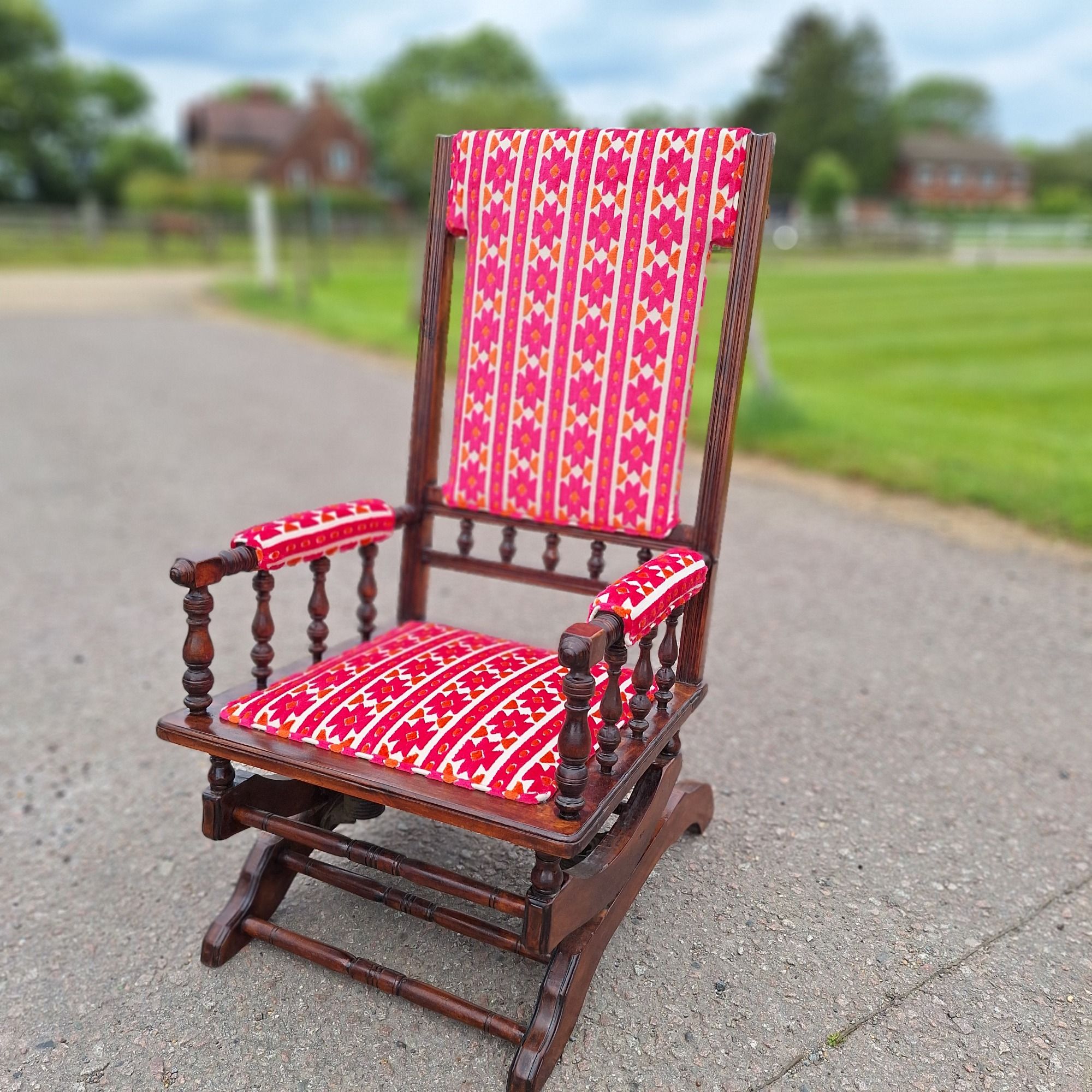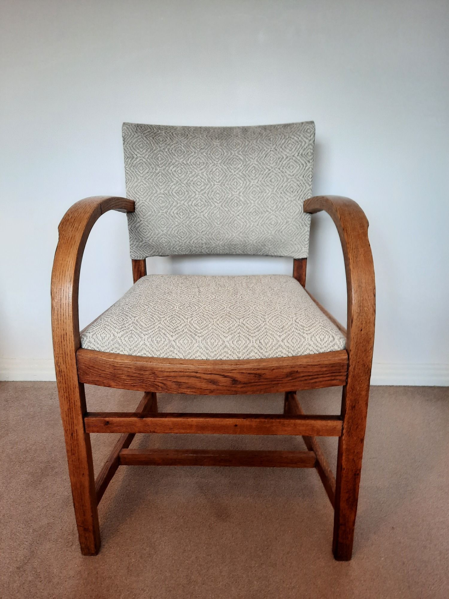Fully reupholstered using traditional techniques (minus animal hair), in a William Morris linen union fabric.